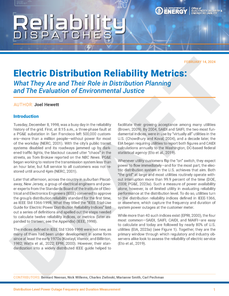 Metrics are used to define the physical character of power reliability, setting standards for its capacity to deliver and measuring its achievement, has been of intellectual interest since the 1950s. The methods and measures used today to plan and operate the power system were developed in the 1970s and refined ever since. Physically defining what constitutes reliability allows planners to consider alternative ways to serve electricity demand at a defined level of reliability and to modify the system to deliver a higher level of service reliability. Increasingly, the way that we think about reliability is driving the design of capacity markets, that provide a mechanism for developing the market price of electricity and resource capacity. Utility regulators are using concepts of reliability to provide incentive payments. And, reliability concepts can be used to evaluate EJ concerns about the way that distribution systems are designed and operated. For more about metrics